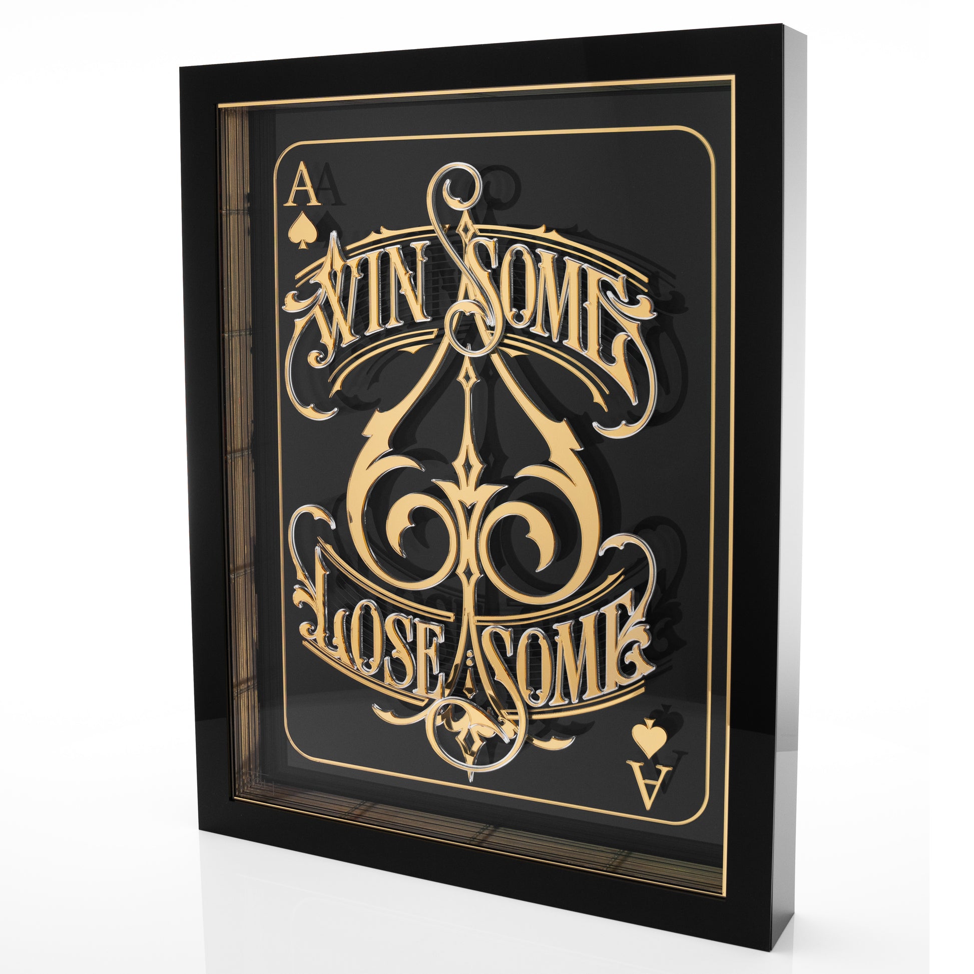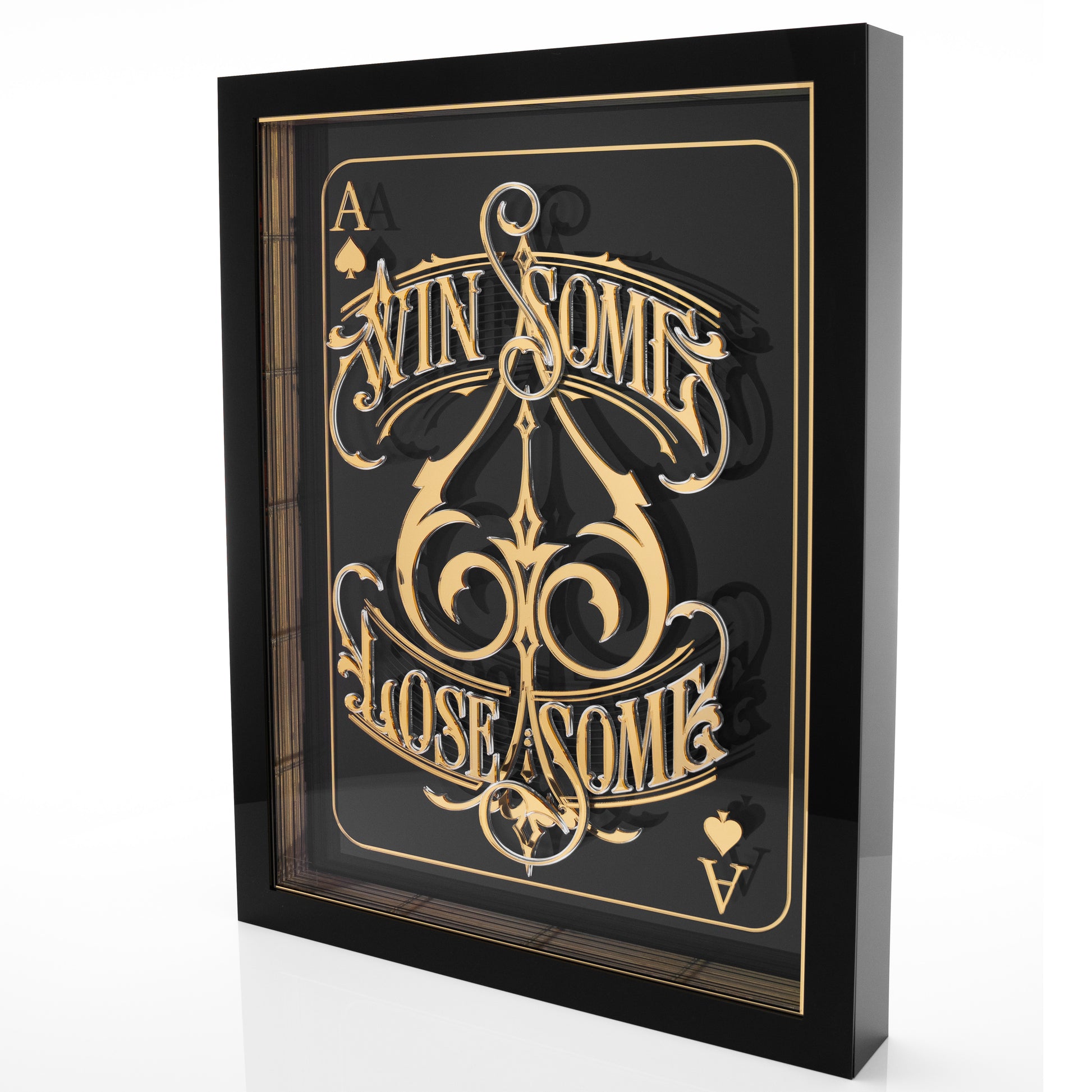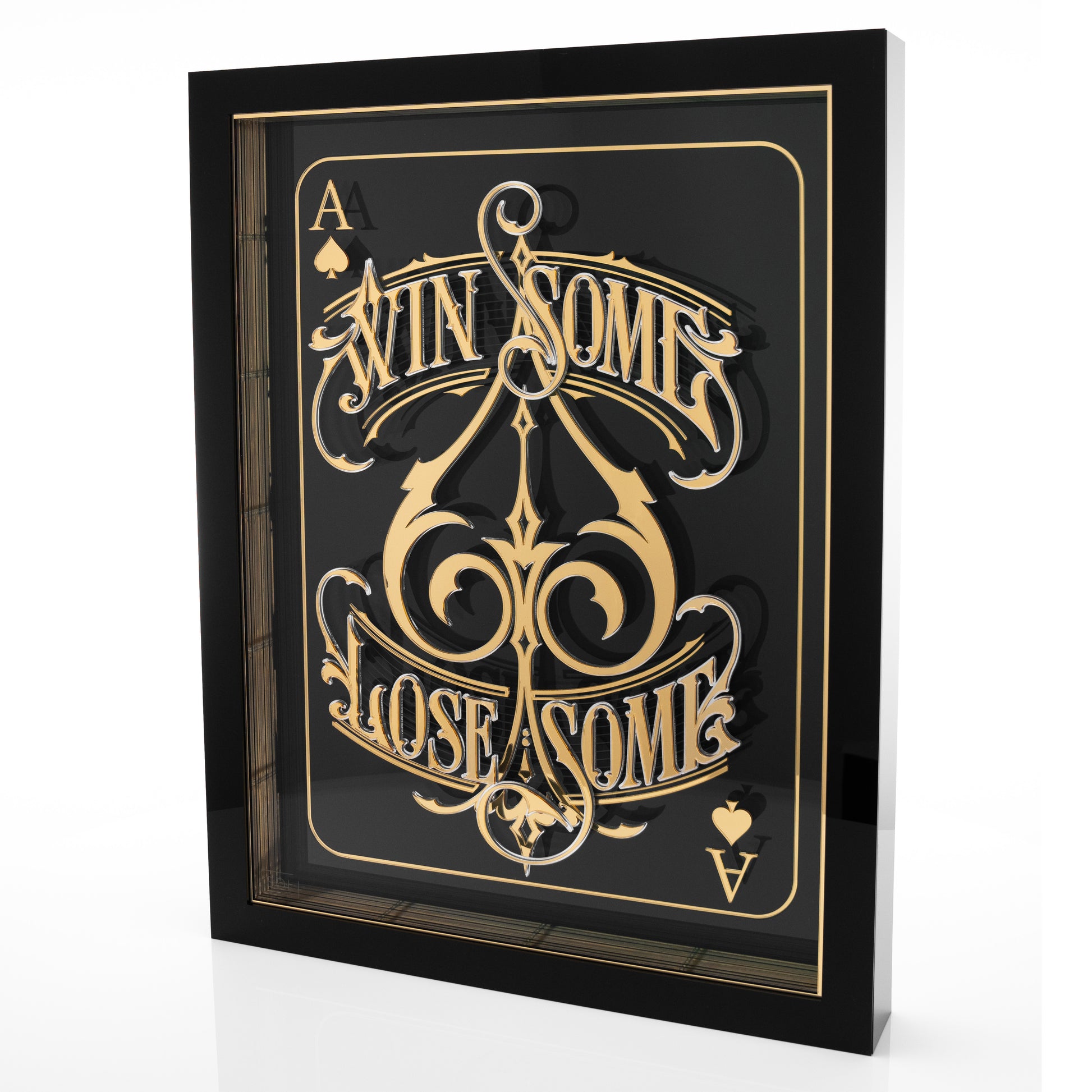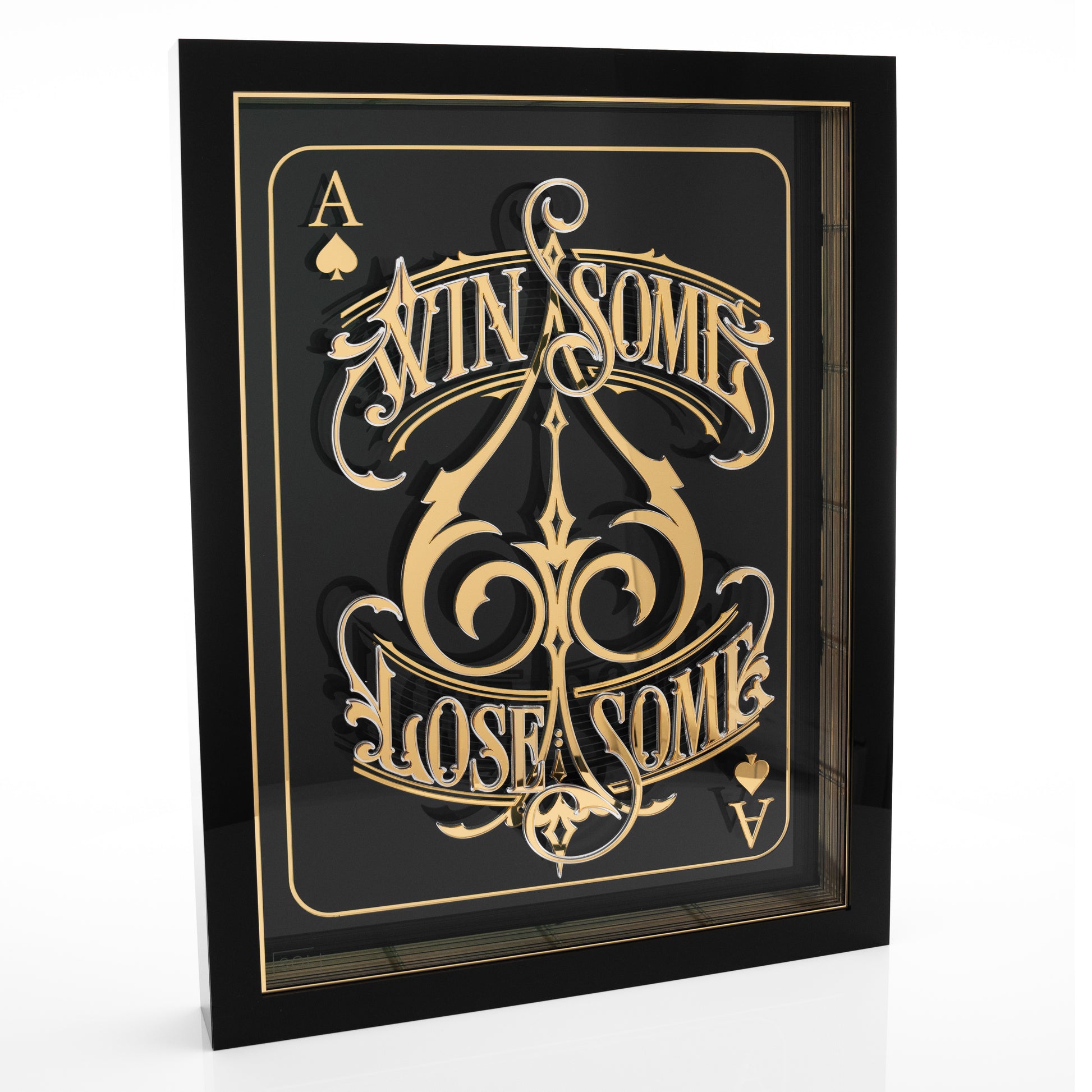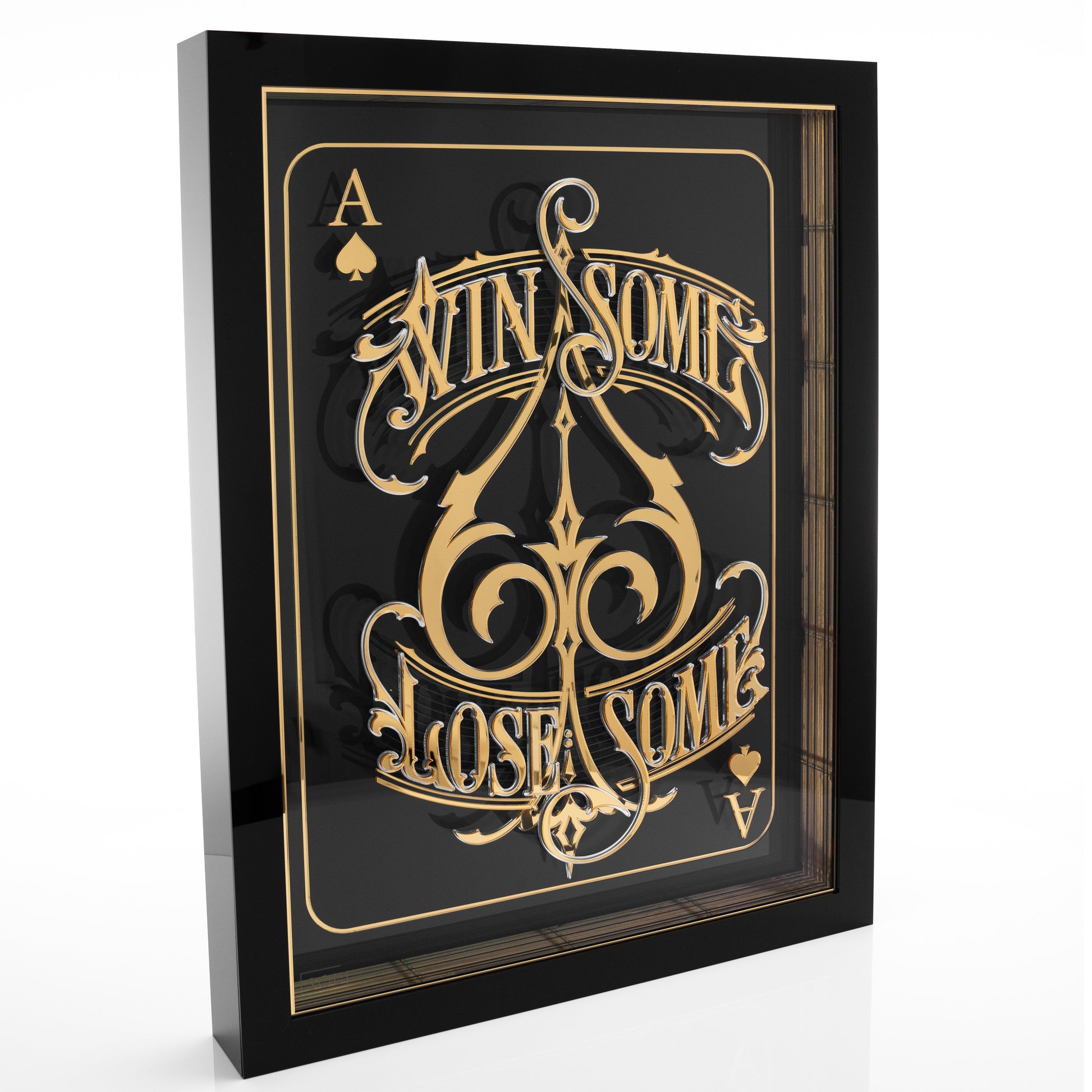 mirrored and polished black acrylic box frame.
