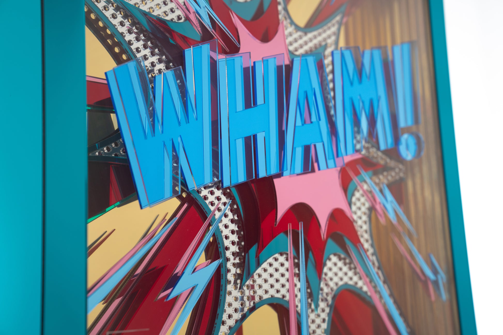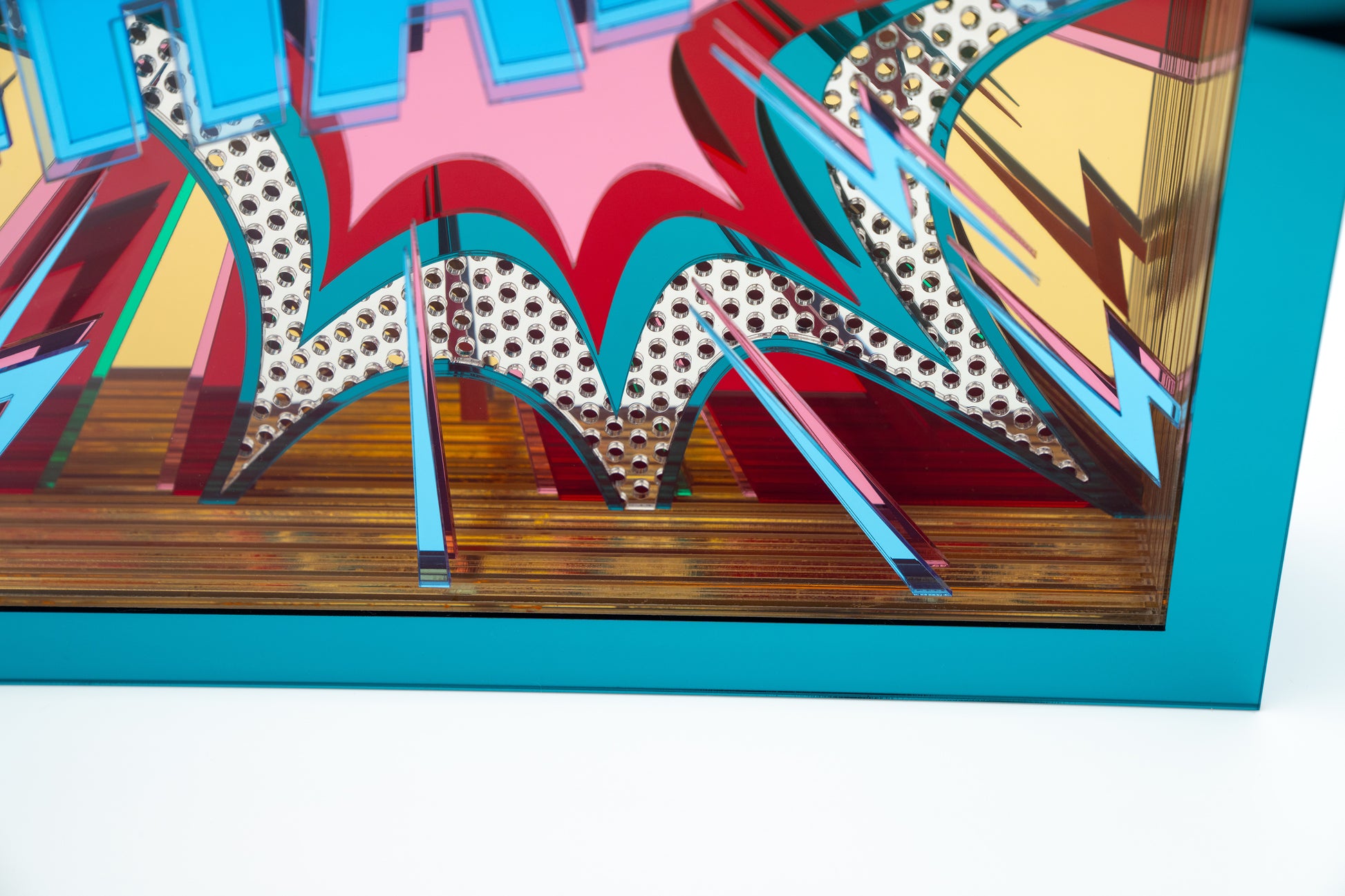 mirrored and blue neon acrylic.
